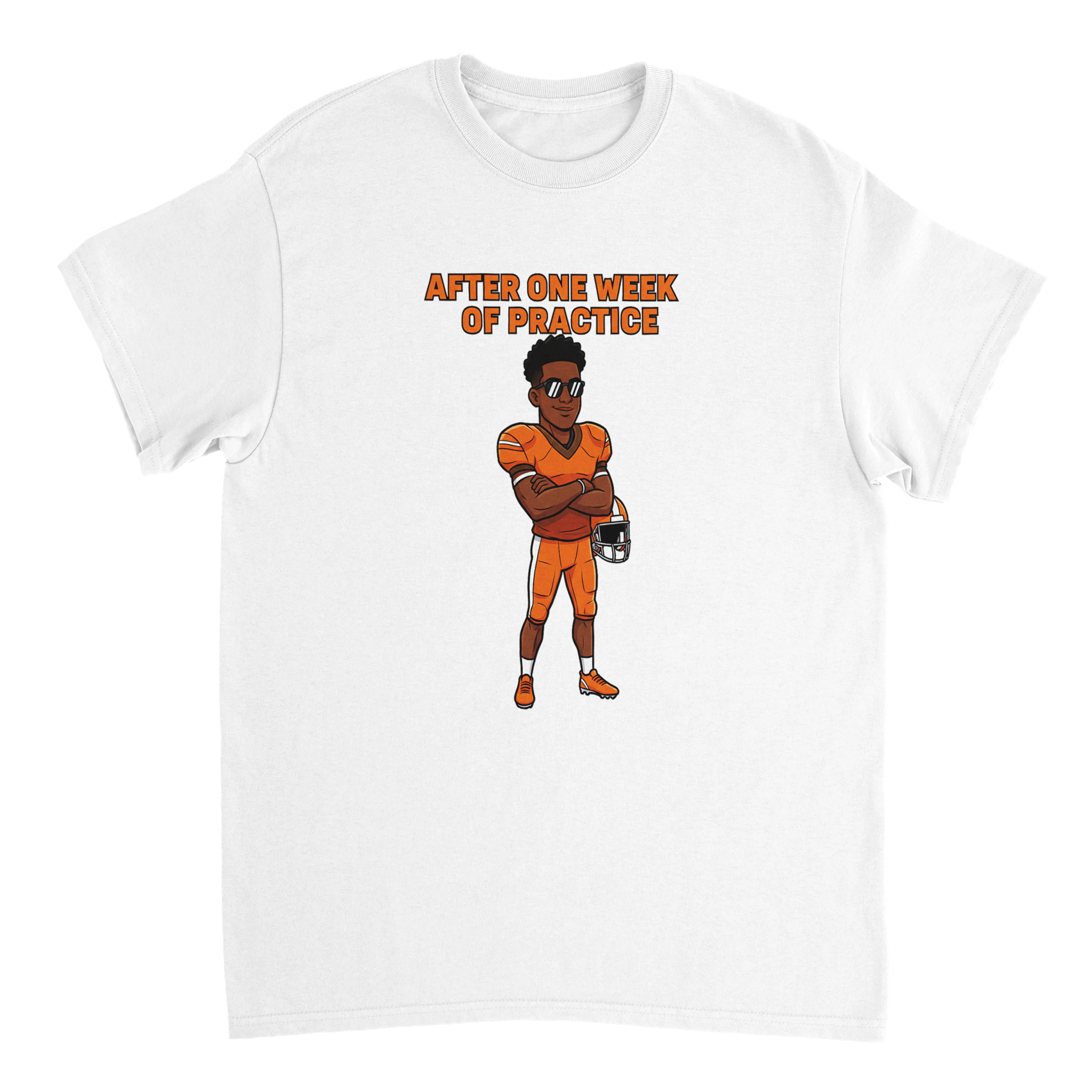 Be the first to review “After One Week Of Practice Funny Prime QB1 Confidence Football Unisex Crewneck T-shirt”