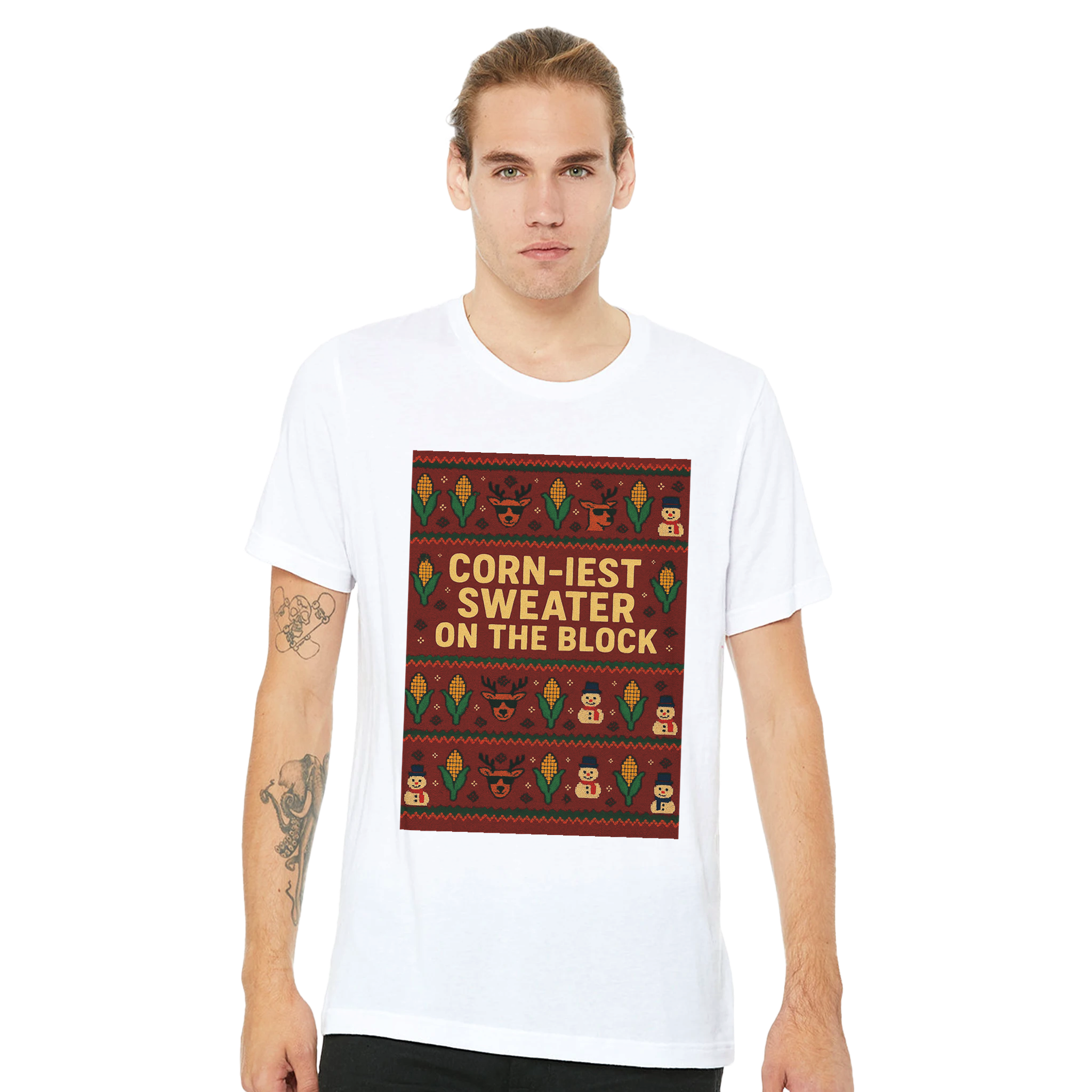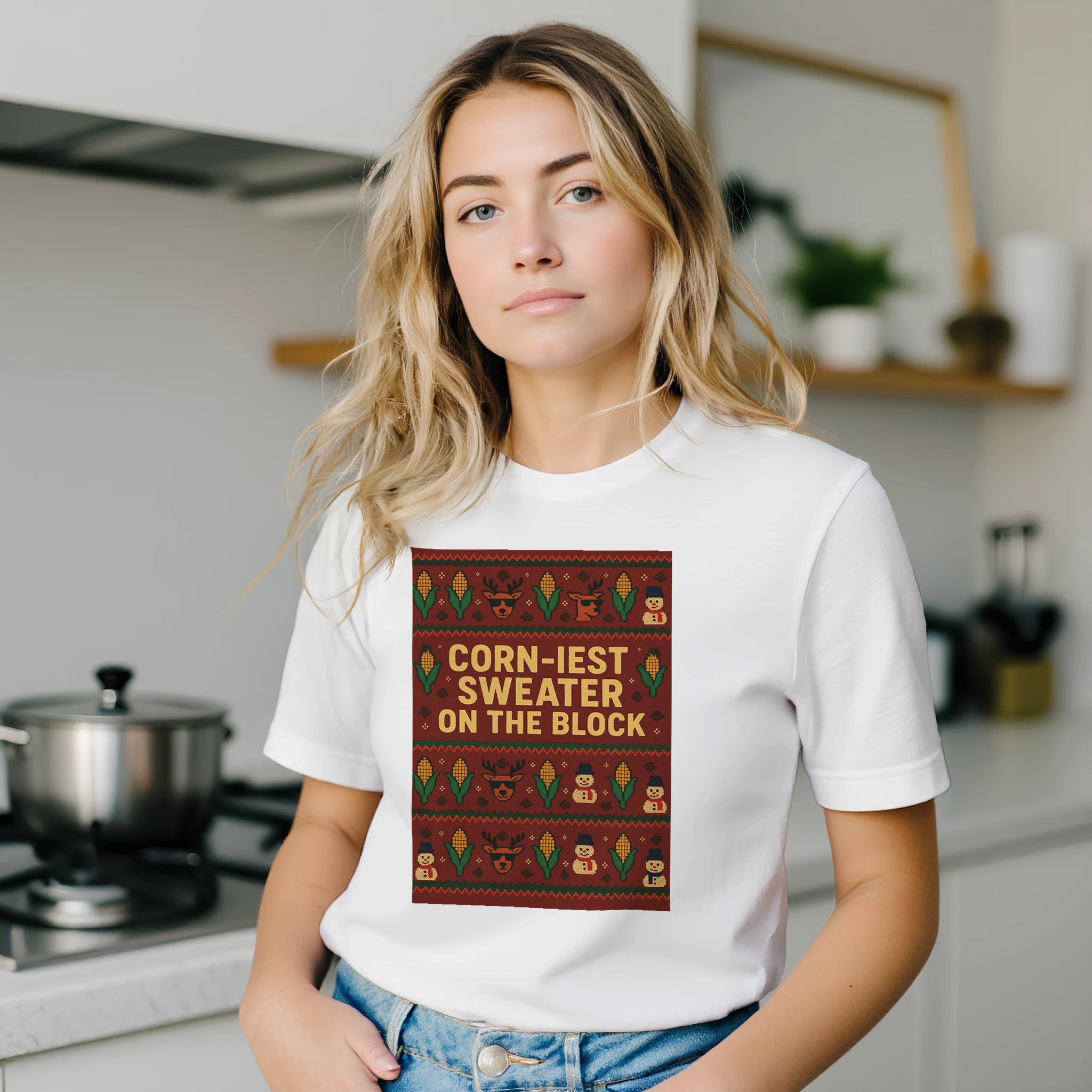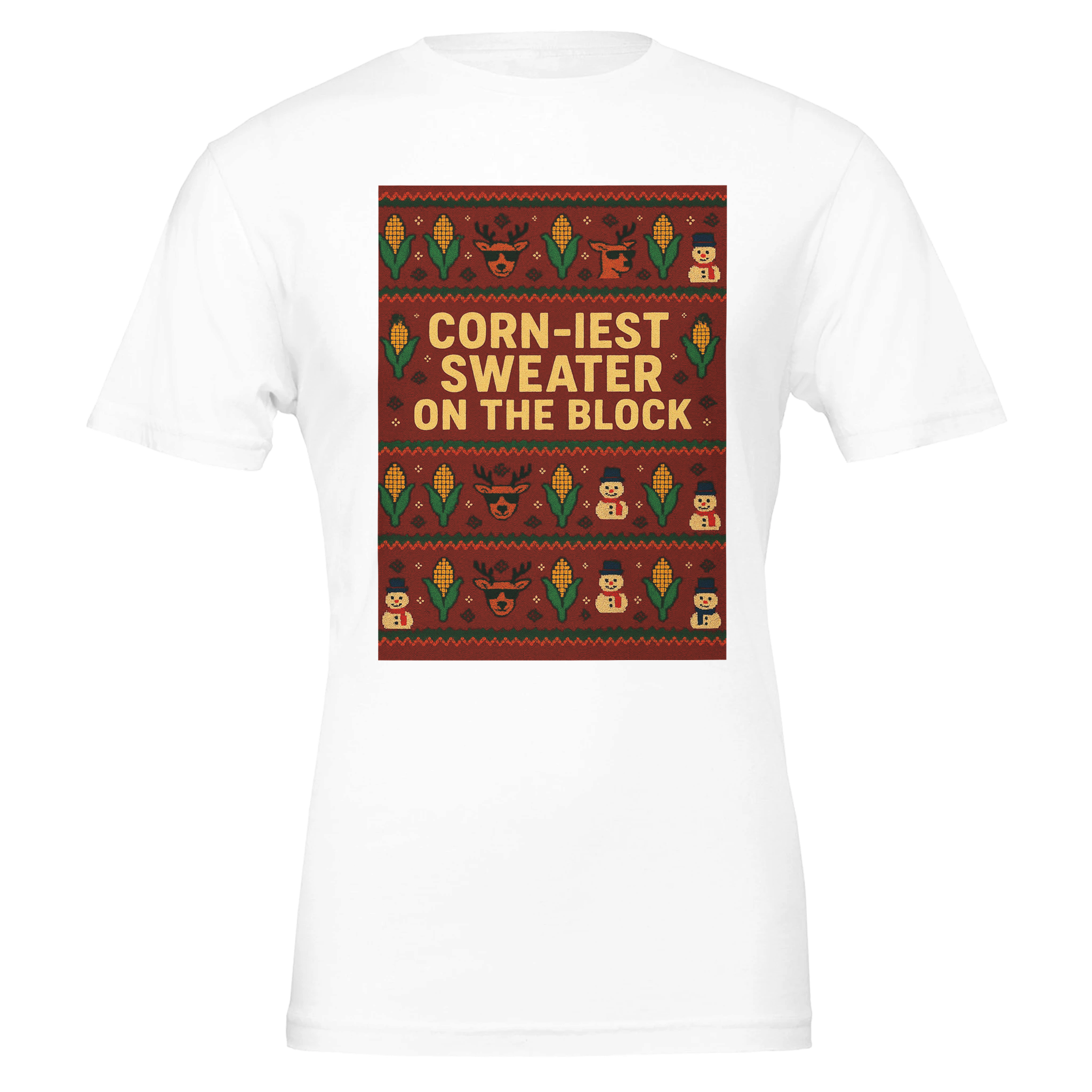 Tailor your perfect festive look! Choose your size from a comprehensive range: XS, S, M, L, XL, 2XL, 3XL, 4XL, to 5XL. Embrace the holiday spirit—select your ideal size and order your ‘Corn-iest Sweater’ T-shirt today!