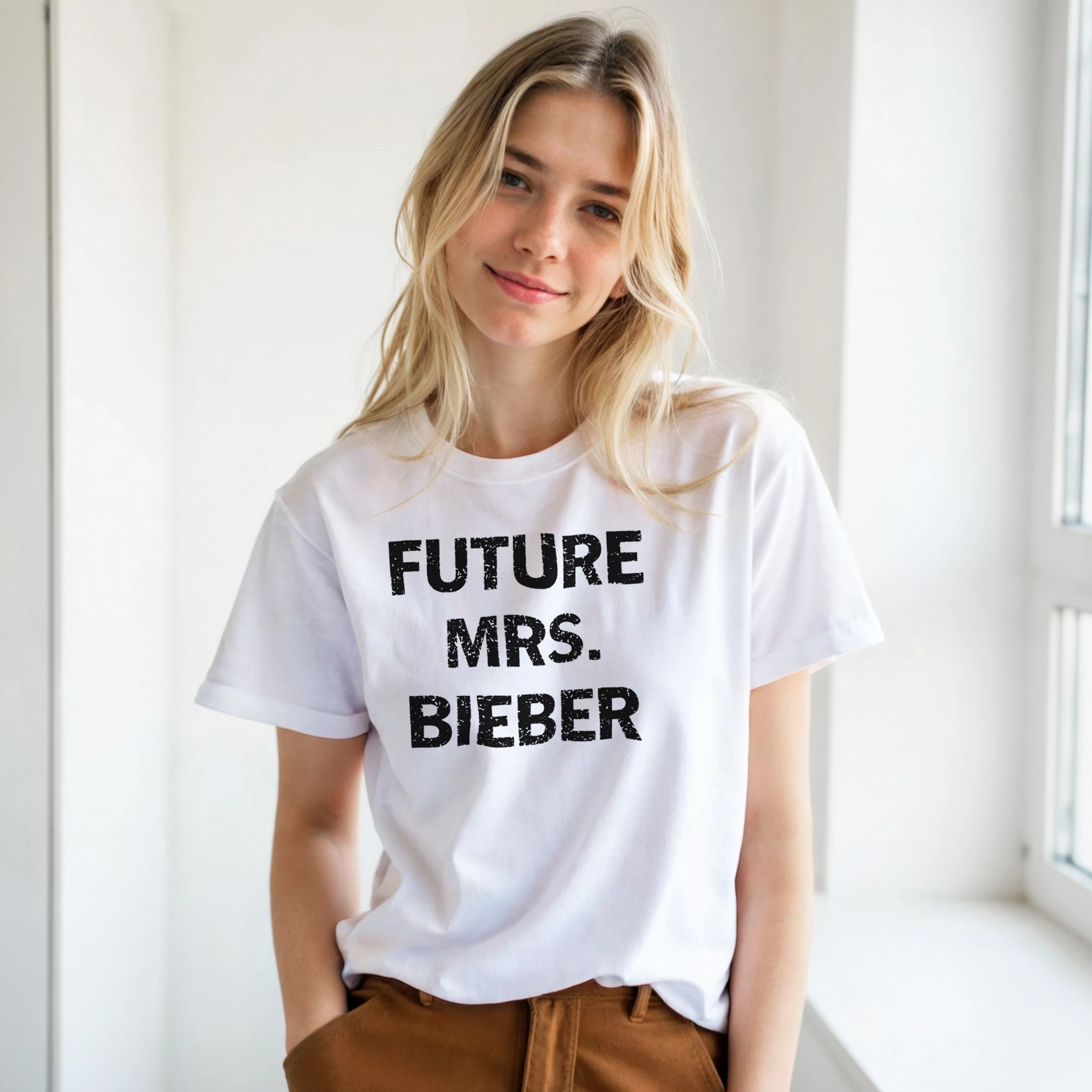Be the first to review “Future Mrs Beiber Funny Fan Performance Unisex Hailey Graphic Crewneck T-shirt”