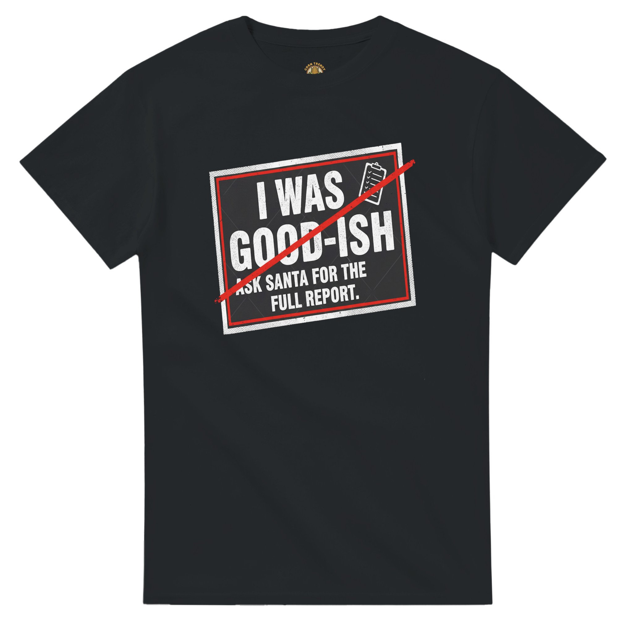I Was Good-Ish Sarcastic Naughty or Nice Santa’s Christmas List Funny Holiday Graphic Novelty Unisex T-shirt