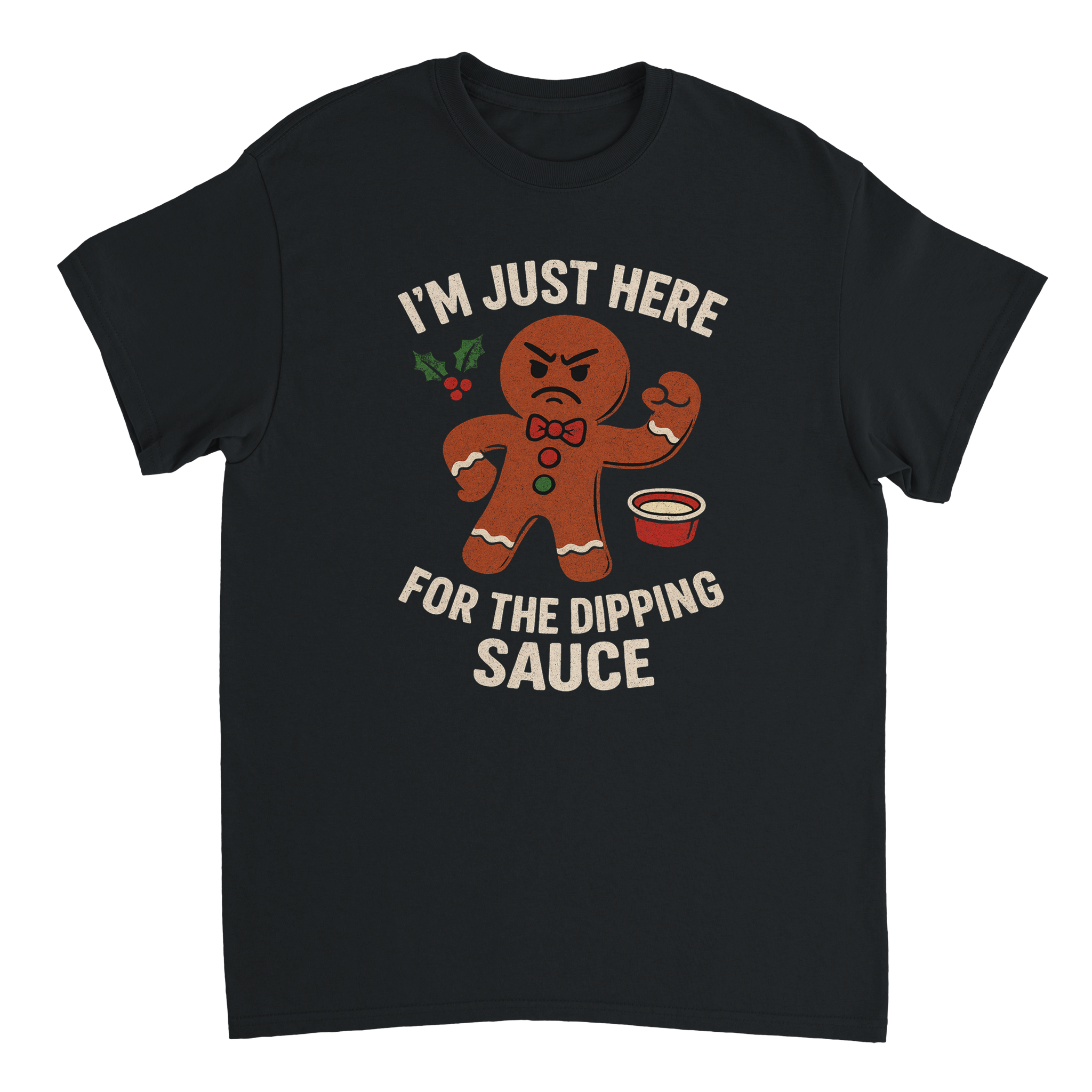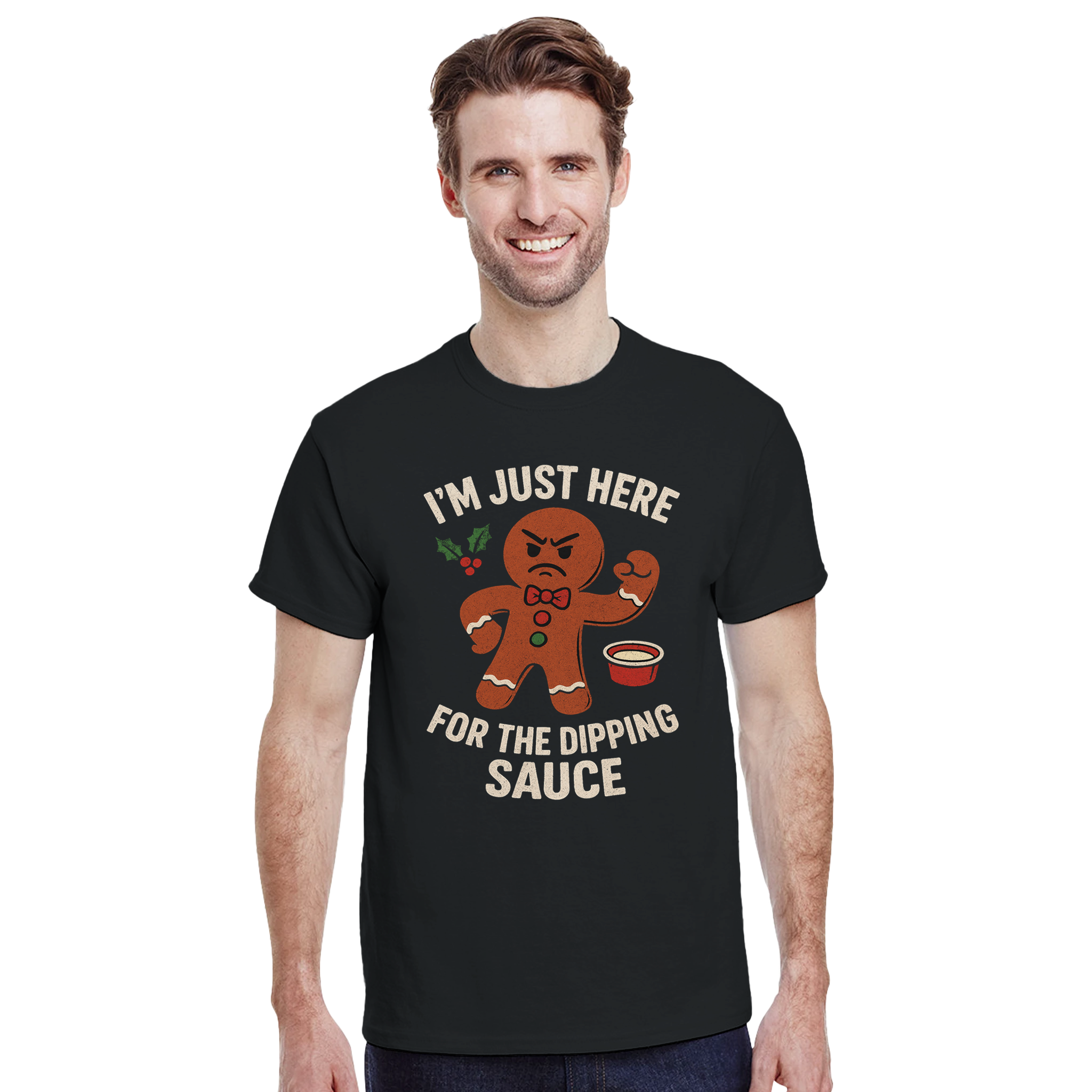 Just Here For The Dipping Sauce Funny Gingerbread Christmas Graphic Festive Novelty Unisex T-shirt
