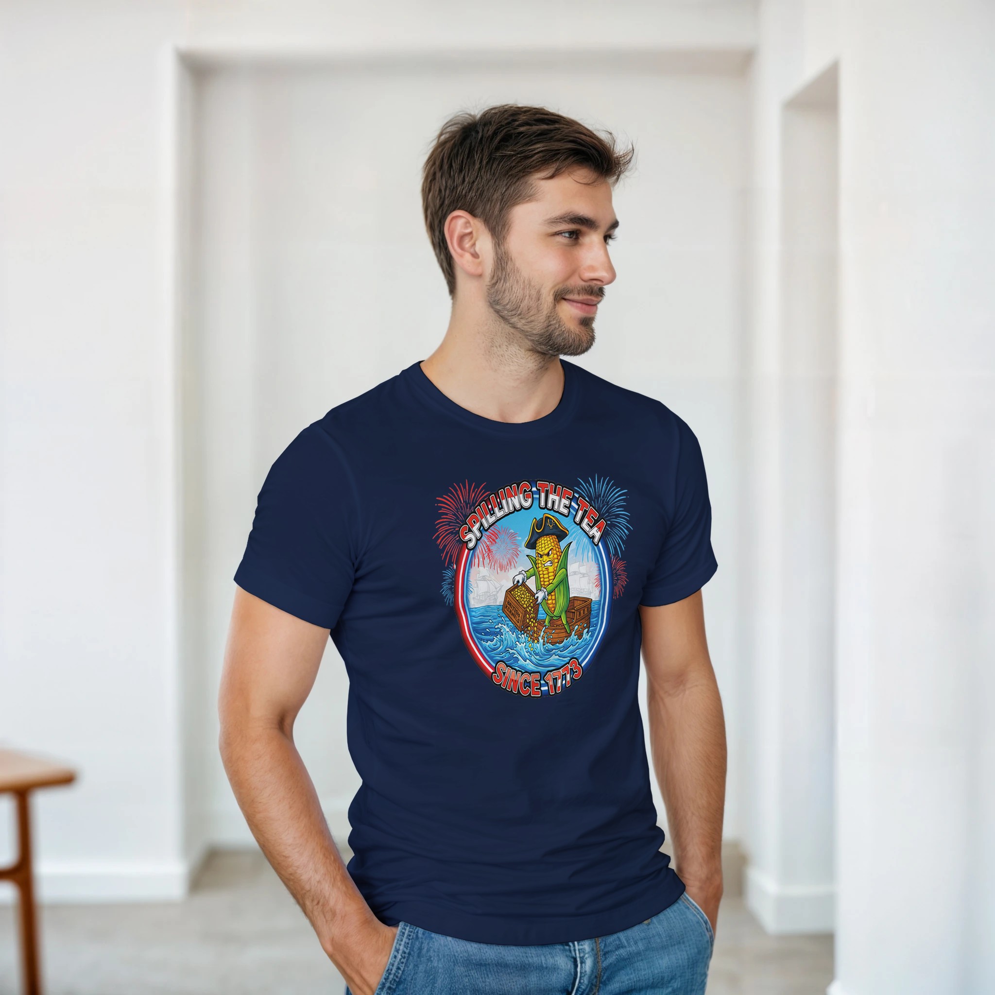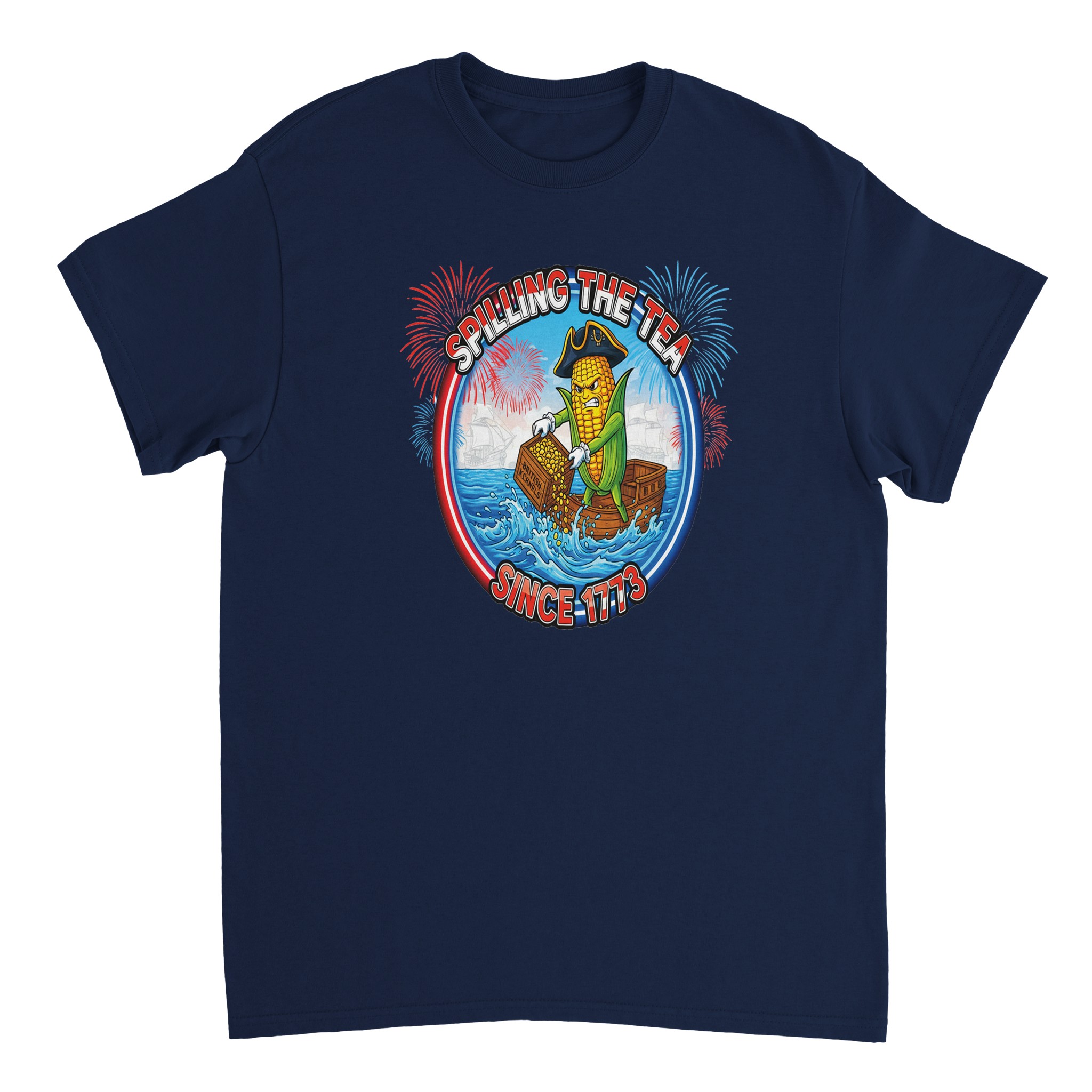 Spilling The Tea Since 1773 History 4th Of July T-Shirt Independence Funny Boston Tea Party American Corn Graphic Tee